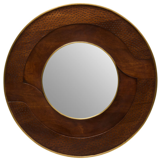 Siva Round Mango Wood Hammered Wall Mirror
