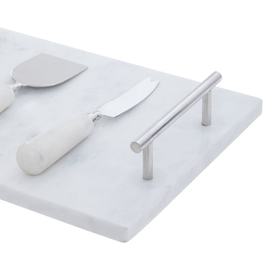 Kindia White Marble Triangular Cheese Board with 3 Knives